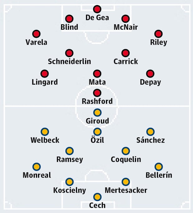 Manchester United have the chance to win three consecutive games for the first time since November by beating Arsenal. The feat would mark an excellent seven days for Louis van Gaal. Arsène Wenger’s side have lost and drawn their past two matches but neither of these were in the league, and given Arsenal are two points behind Leicester City after beating them before the FA Cup round, victory is necessary to continue their push for title glory. Jamie Jackson